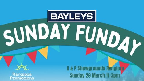 Bayleys Sunday Funday is all in the name! A day of fun for the whole family, showcasing some of Waimakiriri's Best Entertainers, Food Vendors and Market Stall attractions.